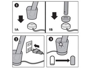1 plug the chrome base charger into a live electric power outlet 2 place the glass on the chrome base 3 place your philips sonicare diamondclean smart into the glass in an upright position.
