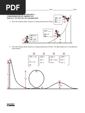 Physical science worksheet conservation of energy 2 ke mv2 gpe mgh me ke gpe 1.